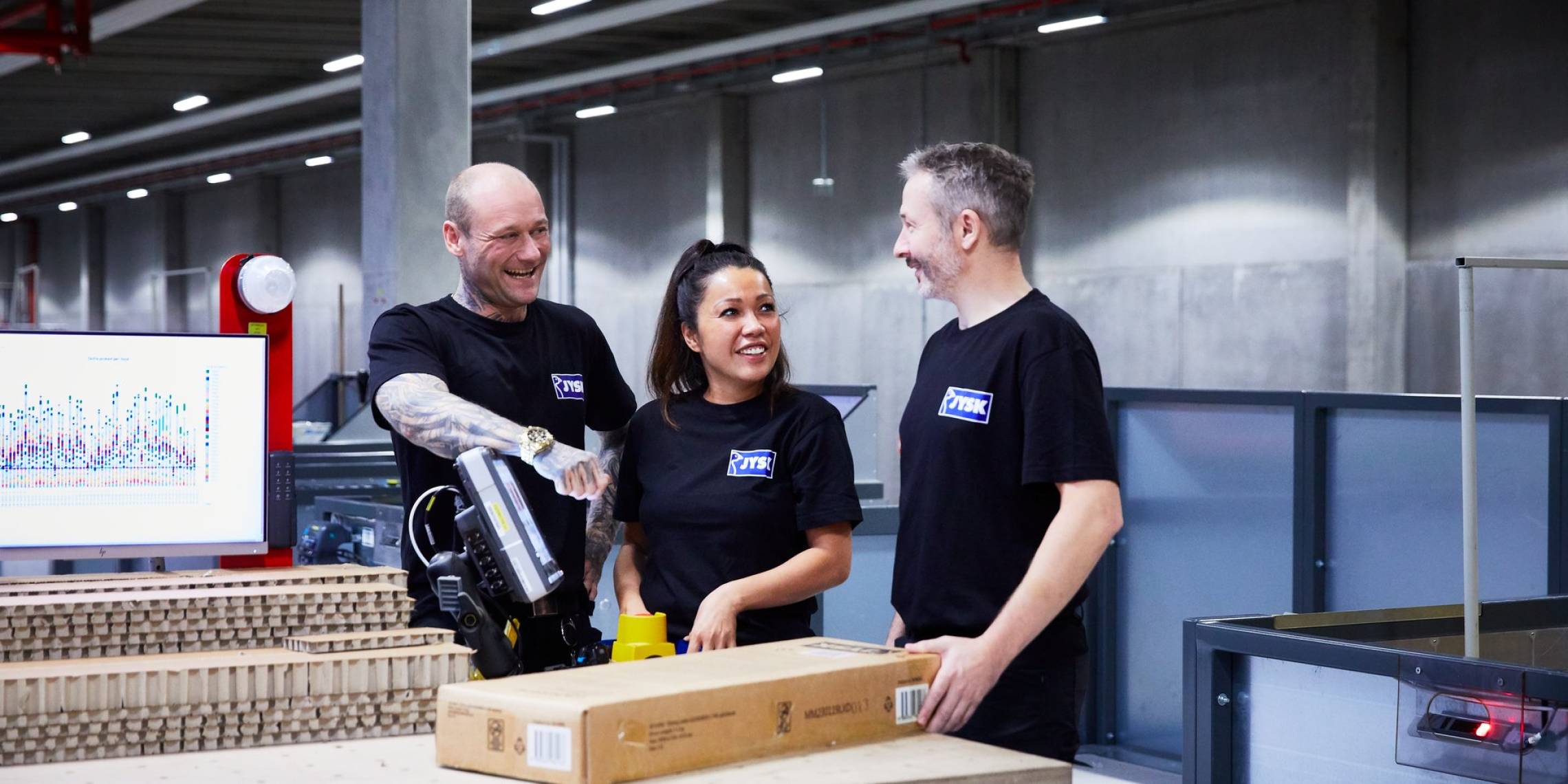 Vi är stolta över att ha på oss vår JYSK-kläder på våra distributionscenters.